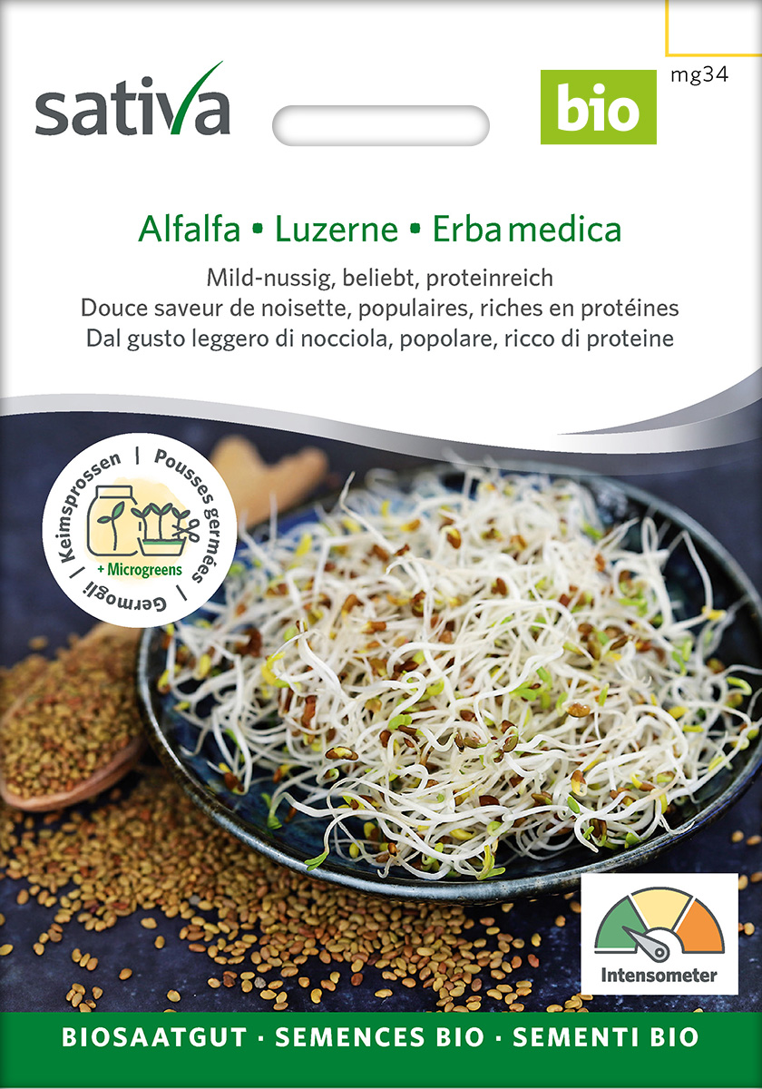 Alfalfa hat einen nussigen, leicht herben, erfrischenden Geschmack. Es handelt bei de Sprossen um gekeimte Sprossen der Luzerne. Als Hülsenfrucht sind Alfalfa Keimsprossen besonders proteinreich!