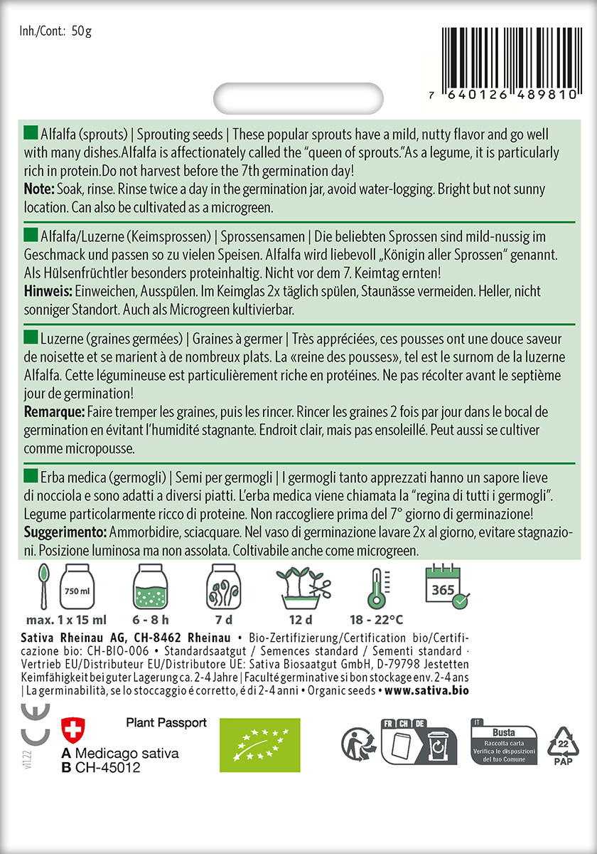 Schreibe die erste Rezension für „Bio-Saatgut Alfalfa (Keimsprossen)“